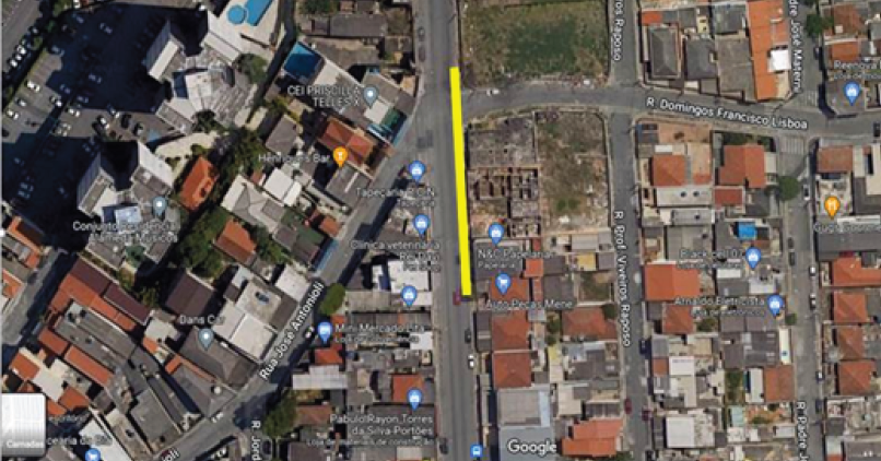 Caso ocorra fila de caminhões, o trecho da Estrada do Sabão entre o nº 1152 até a entrada da obra será utilizado como estacionamento das betoneiras, conforme imagem abaixo: