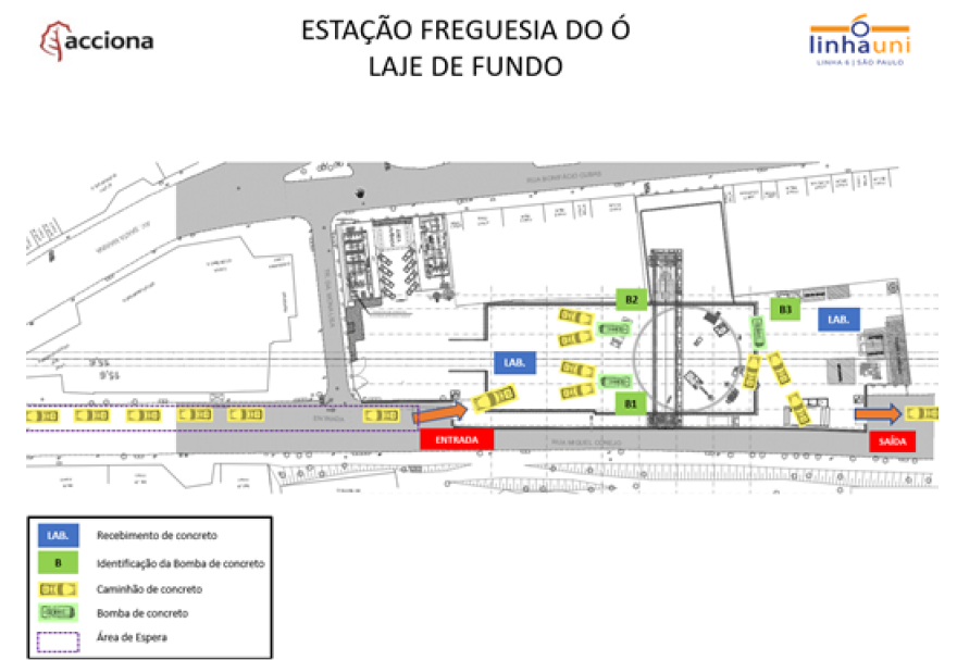 Em razão das obras de construção da Linha 6-Laranja de metrô, haverá a concretagem da laje de fundo do poço, para construção da futura Estação Freguesia do Ó, conforme croqui abaixo: