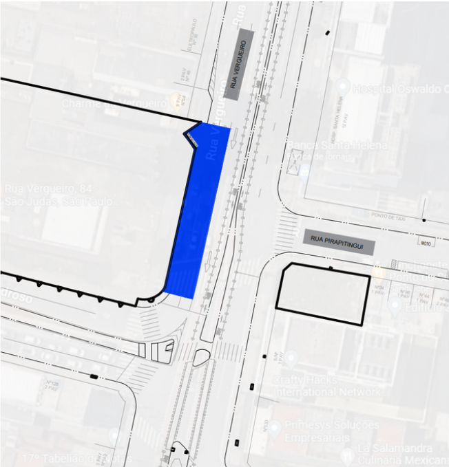 - Fechamento e isolamento da área para realização das atividades (calçada e duas faixas da Rua Vergueiro, 84), conforme imagem abaixo: