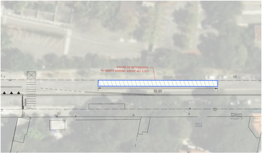 Para realização desta atividade será necessária interdição temporária de uma faixa da Av. Santa Marina, na altura do número 481 ao 531, conforme o croqui abaixo.