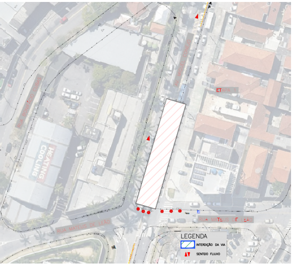 Em razão das obras de construção da Linha 6-Laranja de metrô, a interdição parcial da Av. Miguel Conejo, na altura do nº 850, até o cruzamento com a Rua Mateus Leão, 46, será estendida até o dia 25/07/2023, para continuidade das atividades monitoradas, a partir de 03/04/2023.
