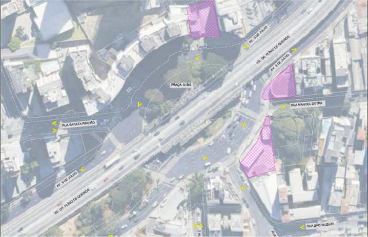 Em razão das obras de construção da Linha 6-Laranja de metrô, a partir do dia 07 de julho de 2021, ocorrerão as demolições dos imóveis desapropriados localizados na Rua Manuel Dutra x Rua Cardeal Leme, Avenida 9 de Julho e Avenida Plinio Barreto x Rua Manuel Dutra, para a construção da futura Estação 14 Bis.