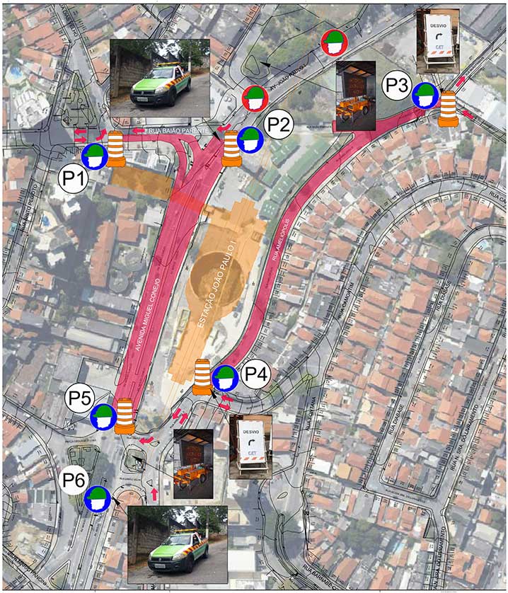 - Fechamento do trânsito de veículos e pedestres nas imediações