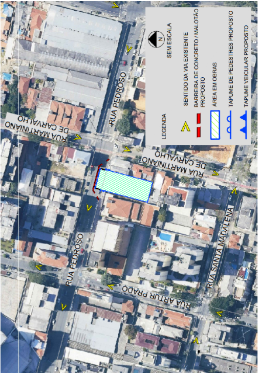 Para a realização da atividade será necessário o fechamento temporário de uma faixa da Rua Pedroso, conforme imagem abaixo: