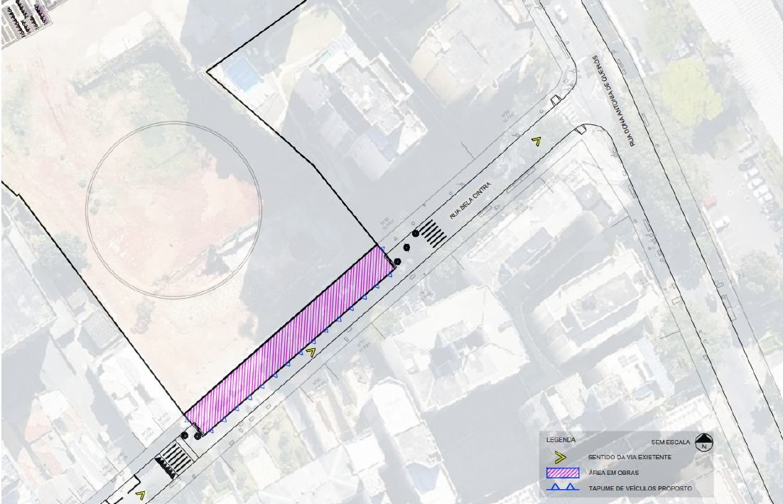 Em razão das obras de construção da Linha 6-Laranja de metrô, a partir de 12/09/2022 haverá a interdição de uma faixa da Rua Bela Cintra e calçada no entorno do canteiro , conforme croqui abaixo.