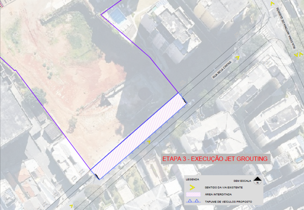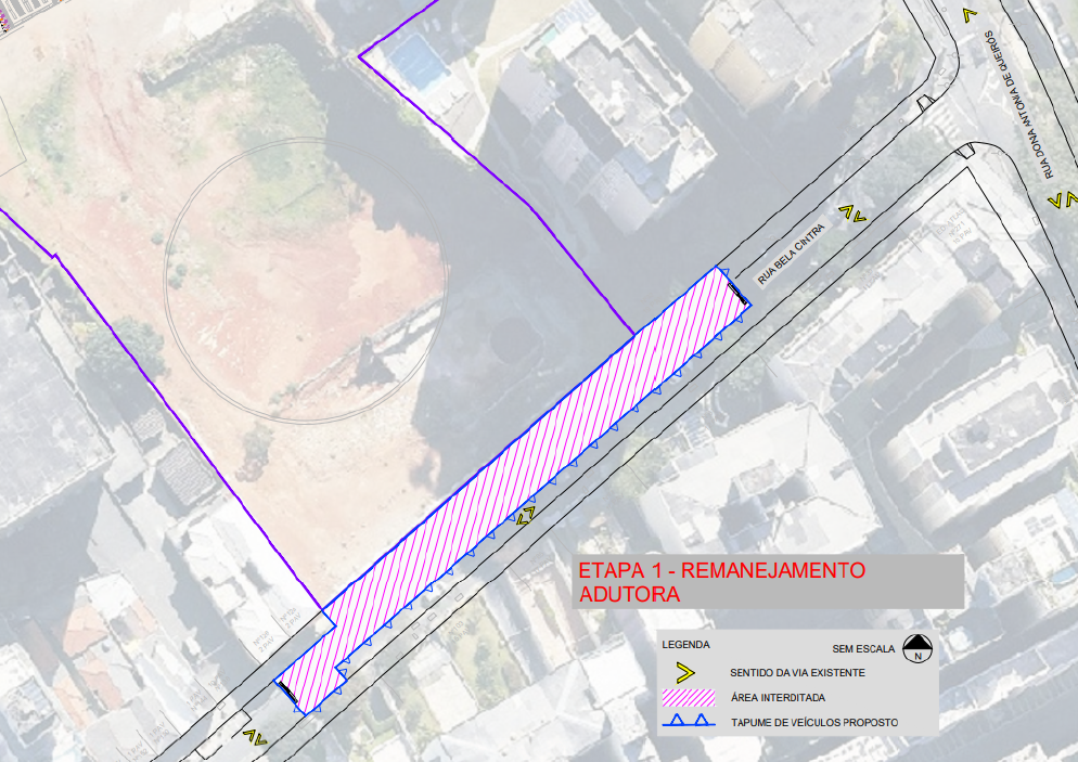 Etapa 3: Interdição parcial da via com uma faixa de rolamento livre para tráfego de veículos e calçada livre no lado ímper.