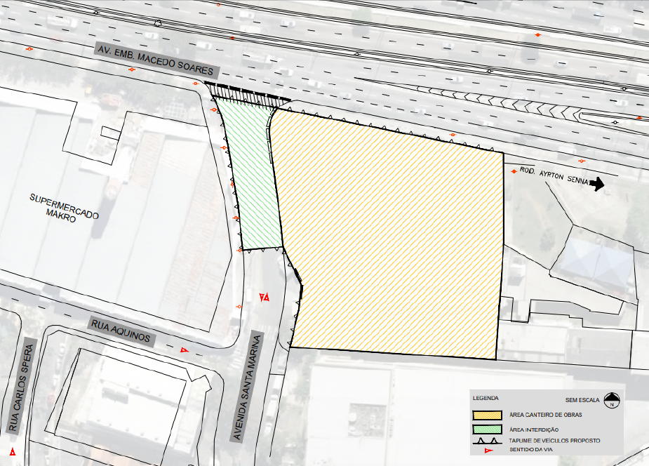 Em razão das obras de construção da Linha 6 - Laranja de metrô, a partir do dia 10/12/2022 haverá interdição na Av. Santa Marina, na altura do número 1750 até o acesso a Av. Embaixador Macedo Soares.