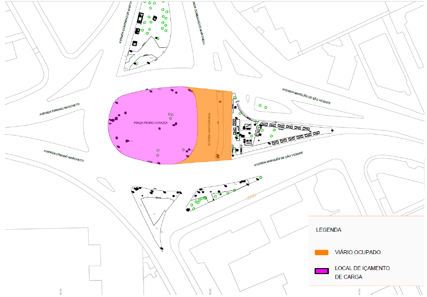Em razão das obras de construção da Linha 6-Laranja de metrô, no dia 21/12/2024 haverá a interdição parcial da Av. Santa Marina, na altura da Praça Pedro Corazza, para a continuação das atividades da futura Estação Santa Marina. A interdição está prevista para iniciar às 22h e deverá se estender até as 05h do dia seguinte, durante este período, a região estará devidamente sinalizada conforme croqui abaixo: