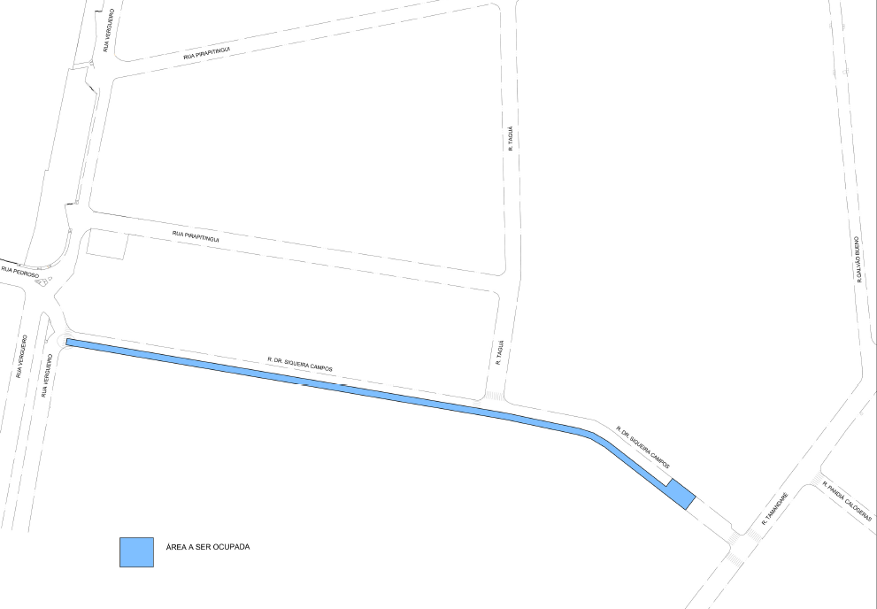 Os serviços serão executados ao longo da via (conforme croqui abaixo); porém sem a necessidade de bloqueio ou desvio do trânsito com um leve estreitamento da via.